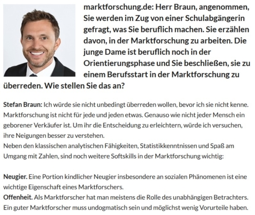 Unser Geschäftsführer Stefan Braun spricht mit Marktforschung.de über Karriere und die Zukunft der Marktforschung.